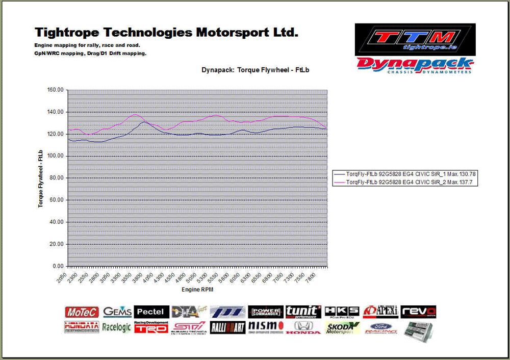 DRD Motorsports, their Honda Civic EG Rally have prepared and installed our New Invo 4 branch into 1 manifold, Full Titanium cat back Exhaust system and New carbon Air Induction box. DRD Motorsports taken their Rally Honda Civic to the company called TTM in Galway Ireland for ECU Remapping and Power Run. Both pictures on the above show bhp and torque figures. Thanks for DRD Motorsports give us the graphs. |