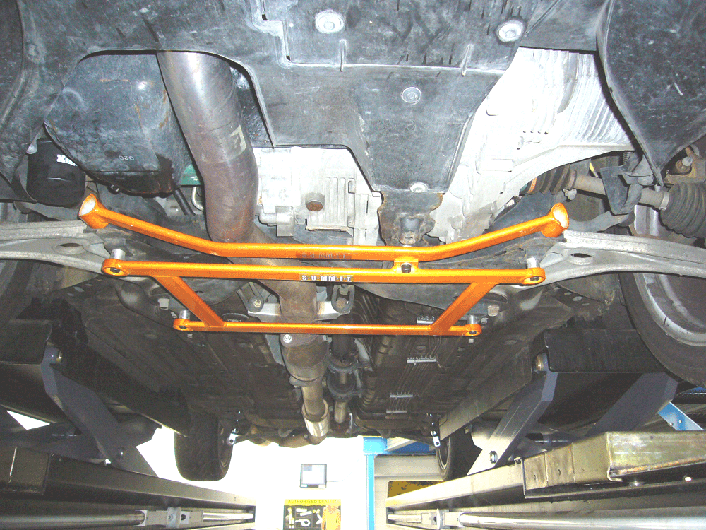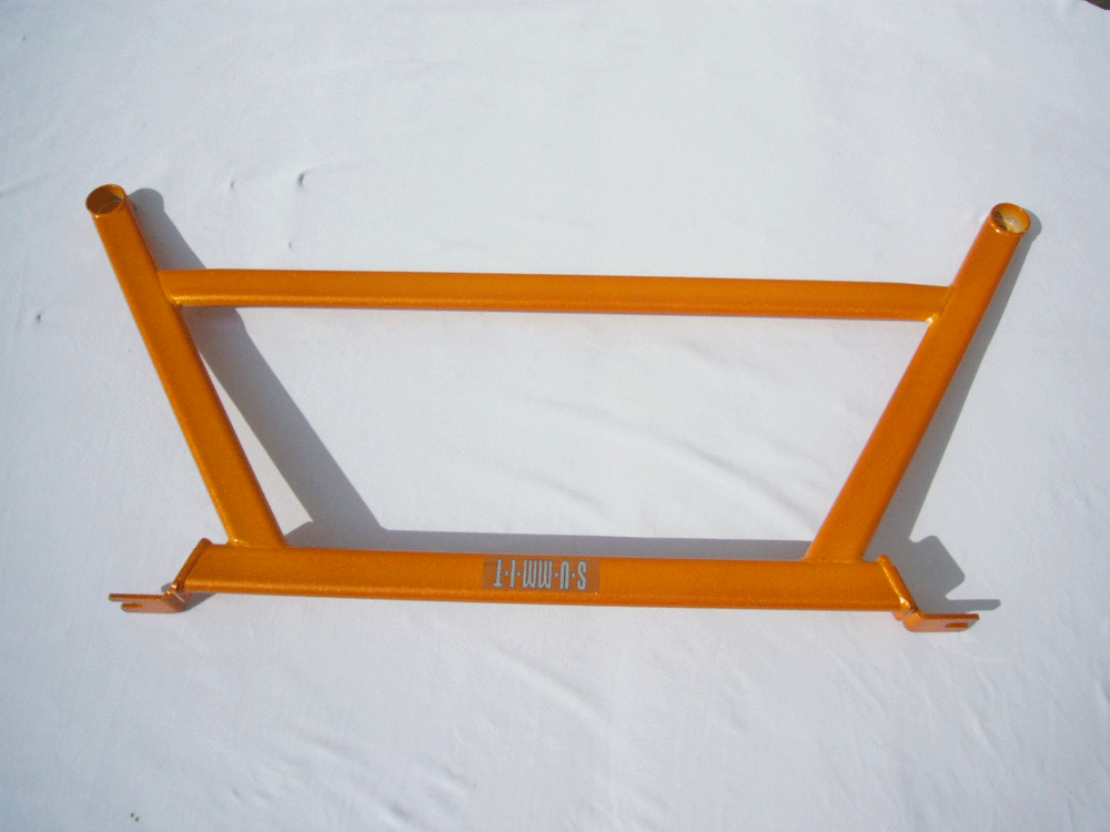 S-U-MM-I-T Body Chassis Brace Bar Product Front Lower Four point Middle Rear Body Chassis Brace MITSUBISHI COLT and COLT TURBO 02 to 07 New MITSUBISHI COLT and COLT TURBO 08>on Model CZT 03 to 11 3 Door & 5 Door Hatchback The SUMMIT reinforce equipments improve chassis rigidity and reduce the flex. By using a monocogue aluminium triple tube shaft and forged parts. Which are not only lightweight but are also exceptionally strong. SUMMIT more upgrades the chassis performance and there by improves handling. This front lower brace is 50% stronger than other type of brace because the SUMMIT Brace is not hollow, it has 3 to 4 layers of tubing inside the brace. |