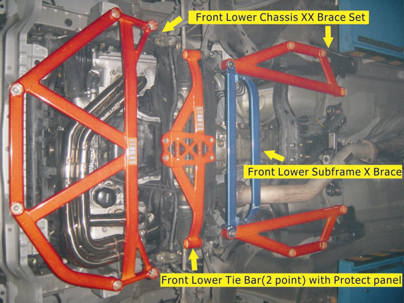 S-U-MM-I-T Body Chassis Brace Bar Product Completed Front and Rear Lower under Chassis Stiffener X brace set, Nissan 350Z Fairlady 03 to 08 Nissan Infiniti and Skyline GT 2-Door Coupe 03 to 06 and Model Code G35 and V35 The SUMMIT reinforce equipments improve chassis rigidity and reduce the flex. By using a monocogue aluminium triple tube shaft and forged parts. Which are not only lightweight but are also exceptionally strong. SUMMIT more upgrades the chassis performance and there by improves handling. This strut brace is 50% stronger than other type of brace because the SUMMIT Brace is not hollow, it has 3 to 4 layers of tubing inside the brace. MGT Racing Ltd Nissan Specialist Tel 02476 398344 Ask for Garth or Mark R B MOTORSPORT Mawdesley Lancashire Tel 01704 822 848 Ask for Steve or Rod Revolution Gateshead Newcastle Tel 0845 0023000 or 0845 0023006 or 3003 Ask for Keith Tyler or Adam or Glenn The Garage Services Skyline Specialist East Sussex Tel 07814 807249 Ask for Gary Clark MOTORSPORT Scotland Tel 01330 860999 Ask for Richard or Ewen |