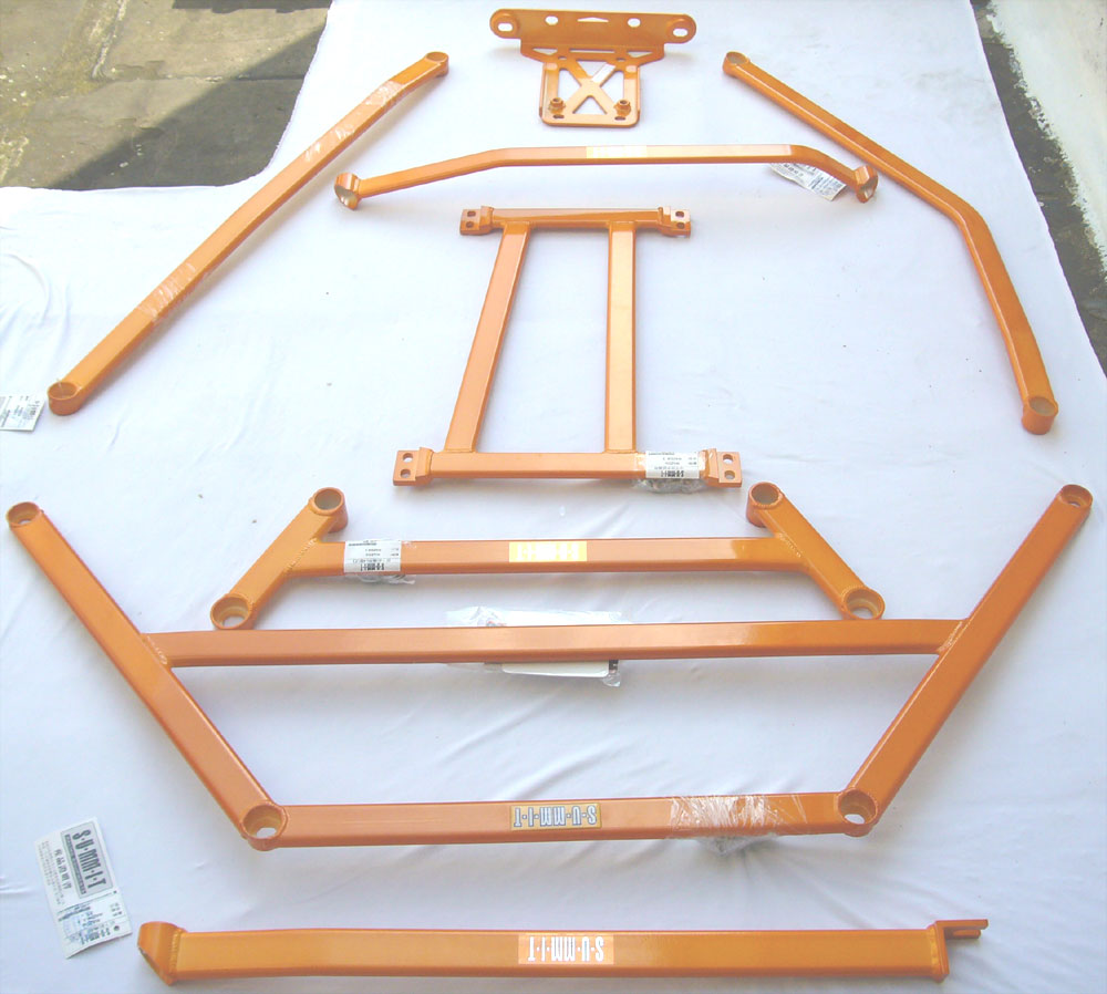 S-U-MM-I-T Body Chassis Brace Bar Product Front Lower Two Point Body Chassis Brace and 2 Rear Lower Aluminium Strut Brace. Fitment: All UK Honda S2000 00 to 08 Far East Japanese JDM Import Spec Honde S2000 99 to 2008 Chassis Model code AP1 and 2-door Coupe The SUMMIT reinforce equipments improve chassis rigidity and reduce the flex. By using a monocogue aluminium triple tube shaft and forged parts. Which are not only lightweight but are also exceptionally strong. SUMMIT more upgrades the chassis performance and there by improves handling. This strut brace is 50% stronger than other type of brace because the SUMMIT Brace is not hollow, it has 3 to 4 layers of tubing inside the brace. N K E Performance Ben-fleet ESSEX Tel 07594 504434 Ask for Nick 6TWO1 Colchester Tel 01206 865544 Ask for Adam Lvell Revolution Gateshead Newcastle Tel 0845 0023000 or 0845 0023006 or 3003 Ask for Keith Tyler or Adam or Glenn BRIAN DOWNIE Performance Scotland Scotland Tel 01467 643546 BRIAN |