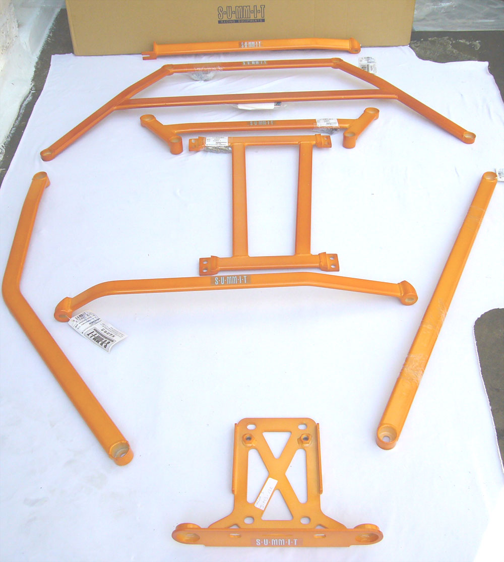 S-U-MM-I-T Body Chassis Brace Bar Product Summit Front Lower Four Point Wishbone Brace For Body Chassis Sub-frame Brace and Rear Lower Support Tie Brace for Body Chassis and Rear Suspension Wishbone Trailing Arm also know as a Swing Trailing Arm. ( 2-Piece one set ) All Honda Civic Model EK 96 to 2000 2-door Coupe or 3-door Hatchback or 4-door Saloon Chassis Model code EK-1,3,4 and EK-9-Type-R The SUMMIT reinforce equipments improve chassis rigidity and reduce the flex. By using a monocogue aluminium triple tube shaft and forged parts. Which are not only lightweight but are also exceptionally strong. SUMMIT more upgrades the chassis performance and there by improves handling. This strut brace is 50% stronger than other type of brace because the SUMMIT Brace is not hollow, it has 3 to 4 layers of tubing inside the brace. N K E Performance Ben-fleet ESSEX Tel 07594 504434 Ask for Nick 6TWO1 Colchester Tel 01206 865544 Ask for Adam Lvell Revolution Gateshead Newcastle Tel 0845 0023000 or 0845 0023006 or 3003 Ask for Keith Tyler or Adam or Glenn BRIAN DOWNIE Performance Scotland Scotland Tel 01467 643546 BRIAN |