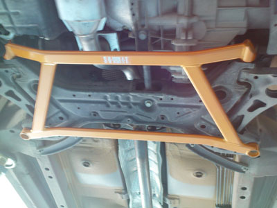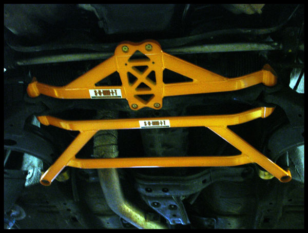 S-U-MM-I-T Body Chassis Brace Bar Product Front Lower Aluminium Body Chassis Strut Brace. NISSAN INFINITIS FX35 The SUMMIT reinforce equipments improve chassis rigidity and reduce the flex. By using a monocogue aluminium triple tube shaft and forged parts. Which are not only lightweight but are also exceptionally strong. SUMMIT more upgrades the chassis performance and there by improves handling. This strut brace is 50% stronger than other type of brace because the SUMMIT Brace is not hollow, it has 3 to 4 layers of tubing inside the brace. |