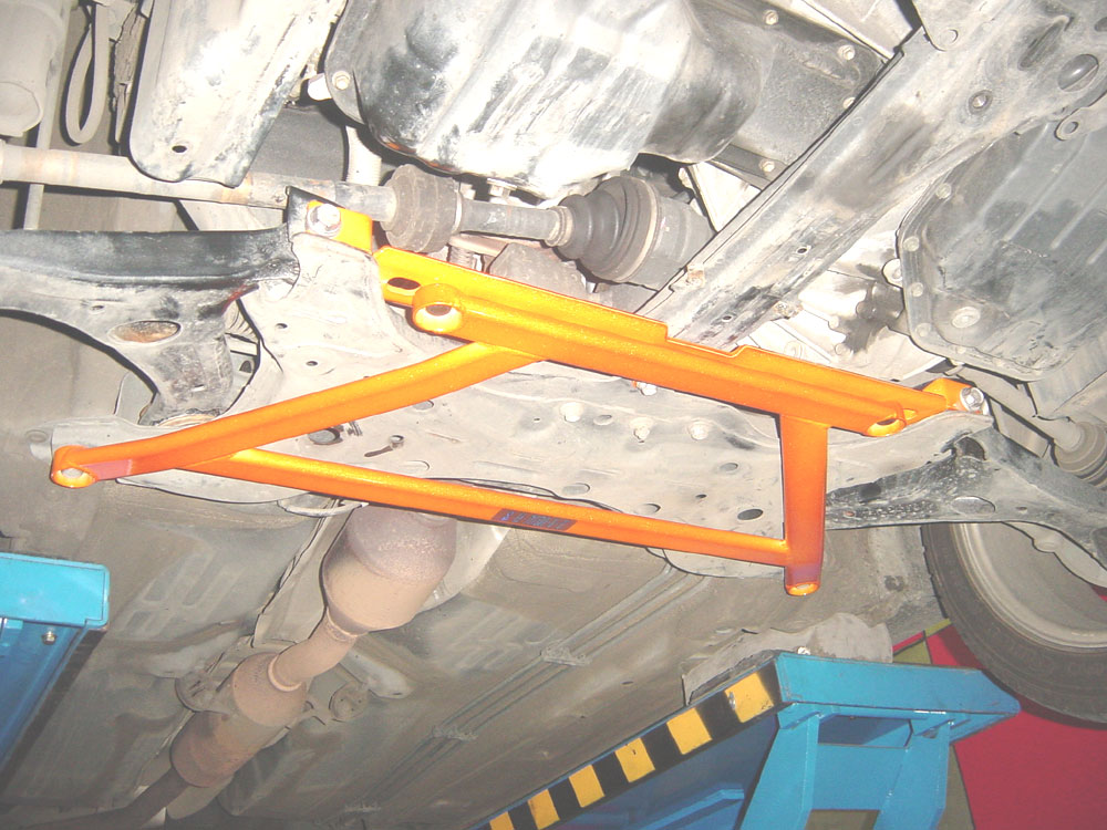 S-U-MM-I-T Body Chassis Brace Bar Product Front Lower 4 Point Aluminium Wishbone and Sub-frame Chassis Stiffener Brace. TOYOTA CELICA MODEL ZZT231 99 TO 06 The SUMMIT reinforce equipments improve chassis rigidity and reduce the flex. By using a monocogue aluminium triple tube shaft and forged parts. Which are not only lightweight but are also exceptionally strong. SUMMIT more upgrades the chassis performance and there by improves handling. This lower brace is 50% stronger than other type of brace because the SUMMIT Brace is not hollow, it has 3 to 4 layers of tubing inside the brace. Fensport Toyota and SUZUKI Swift Specialist Tel 01354 696968 Ask for Dan or Tim |